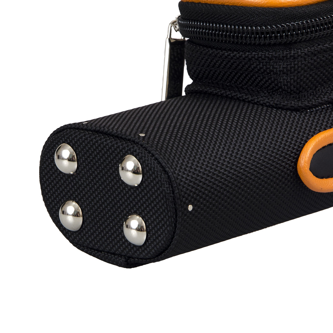 На дне с внешней стороны тубуса имеются ножки из стали. Вы можете ставить тубус на пол, не боясь испачкать или затереть материал. Благодаря ножкам, чехол устойчив в вертикальном положении.