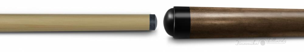 В двусоставных киях установлены специальные замки из прочного полимерного материала – собственная разработка Фабрики. Соединяя турняк и шафт, эта деталь обеспечивает идеальную скрутку, а также участвует в процессе замедления энергии, гася колебания, идущие в тыльную часть турняка, где уже находится груз. Использование цельного лепестка без склейки в построении кия обеспечивает стабильность, прочность, устойчивость изделия к искривлению.