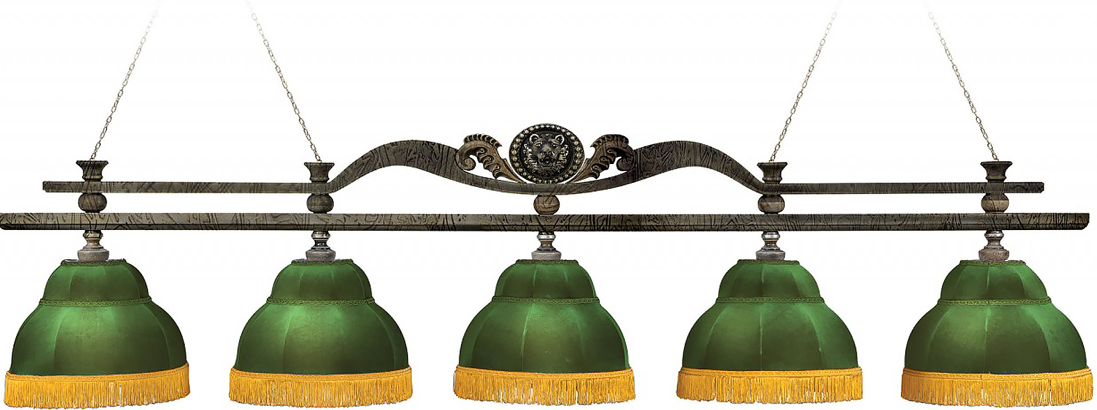 Лампа Лео 5пл. клен (Авт. № 2,бархат зеленый,бахрома желтая,фурнитура золото)