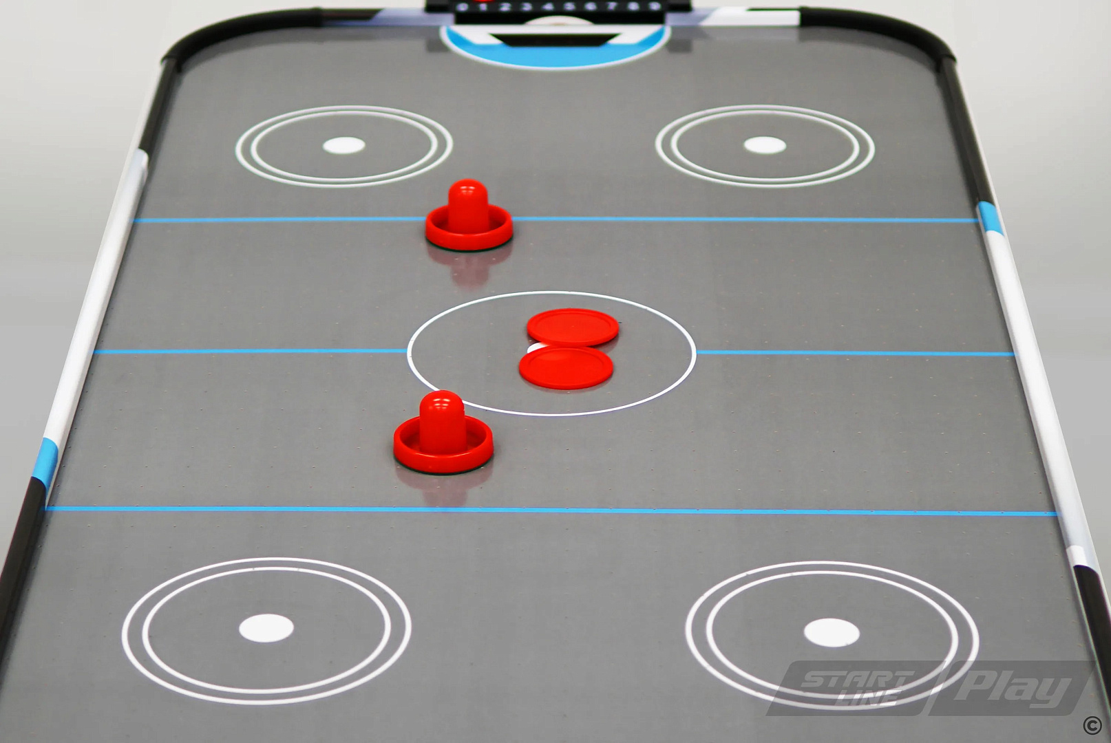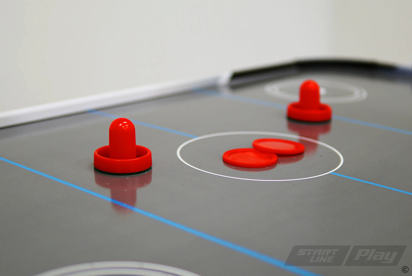 Игровой стол имеет воздушный компрессор, который равномерно подает воздух через отверстия по всей поверхности стола. Поэтому шайба не будет застревать на поле в процессе игры и ваши впечатления останутся на высоте!