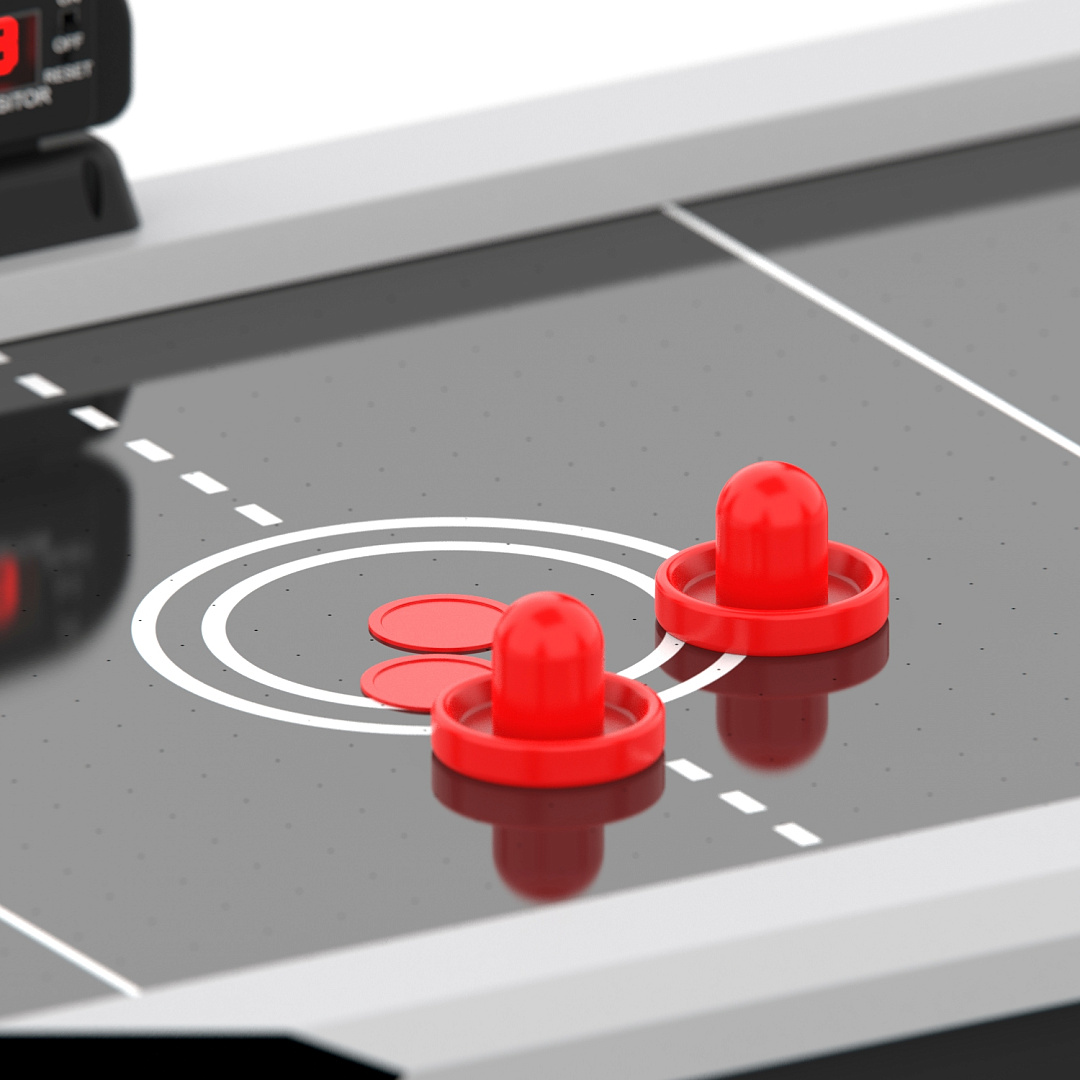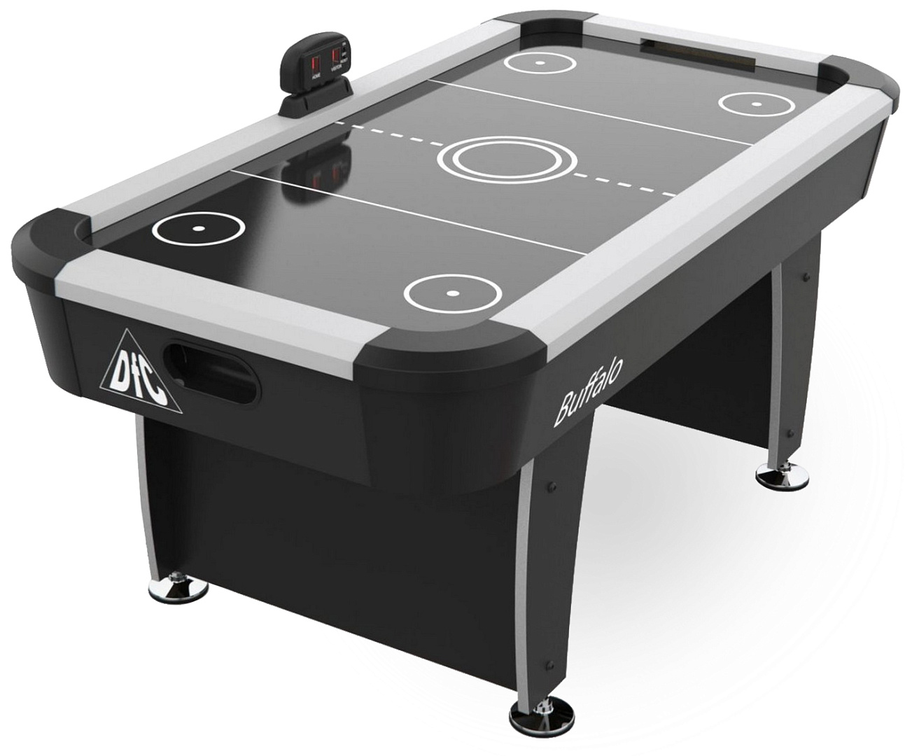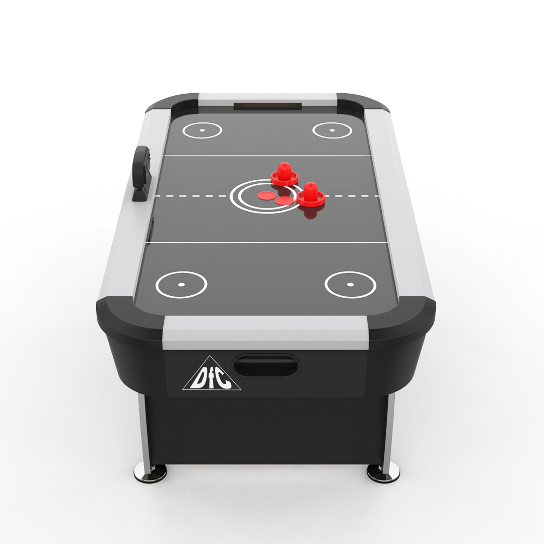 Стол оборудован электронным табло для подсчета очков. Корпус выполнен из специально обработанного МДФ, сверху покрытого прочной пленкой из ПВХ. Мощный компрессор подает воздух через отверстия. Напряжение: 220В.