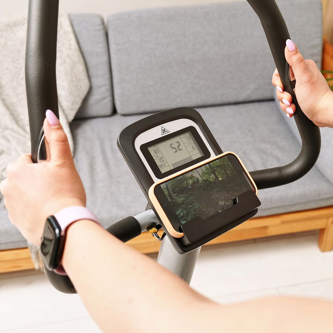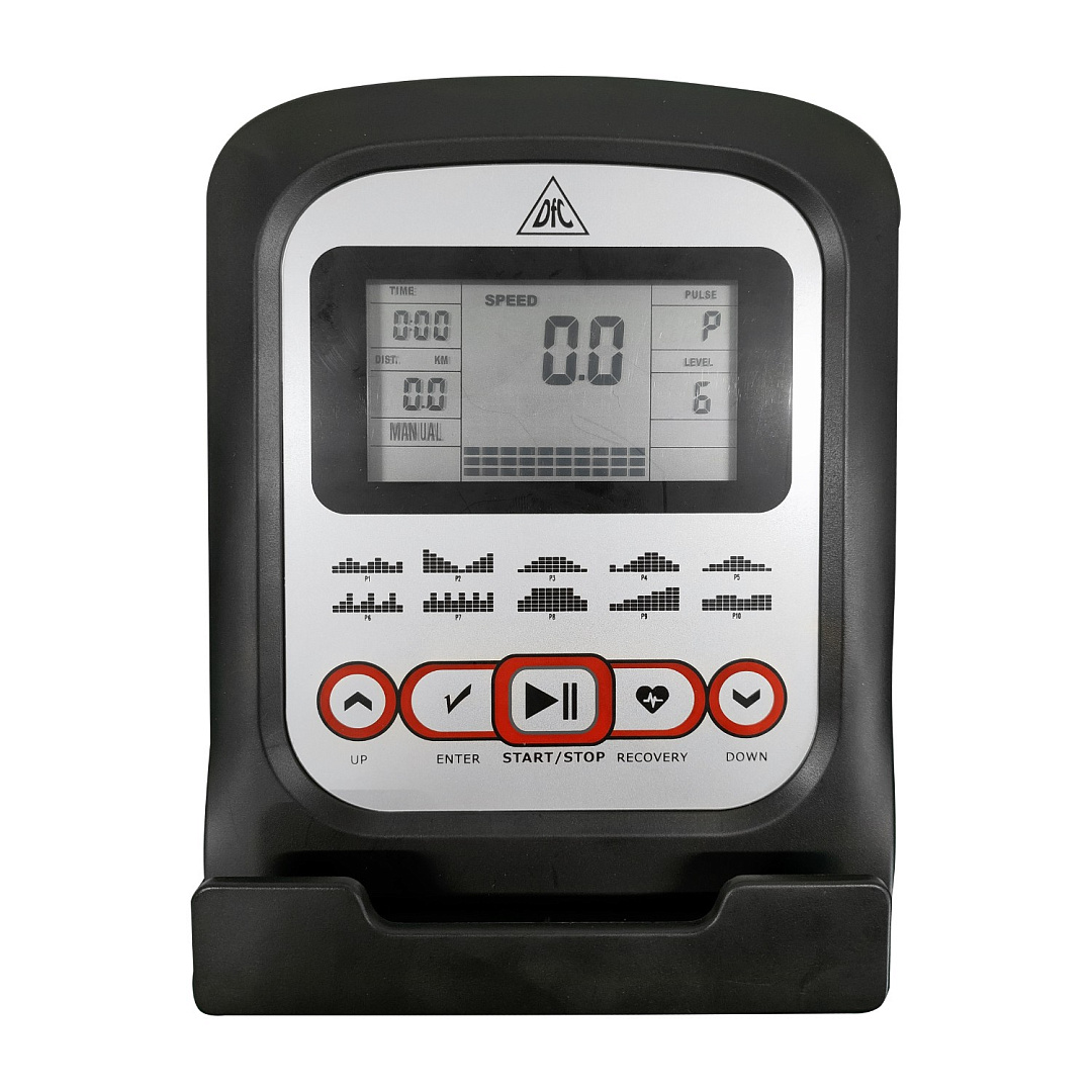 Монохромный LCD дисплей с синей подсветкой выводит основные параметры занятия. Также на передней консоли имеется подставка под телефон или планшет. Предусмотрена 21 программа тренировки.