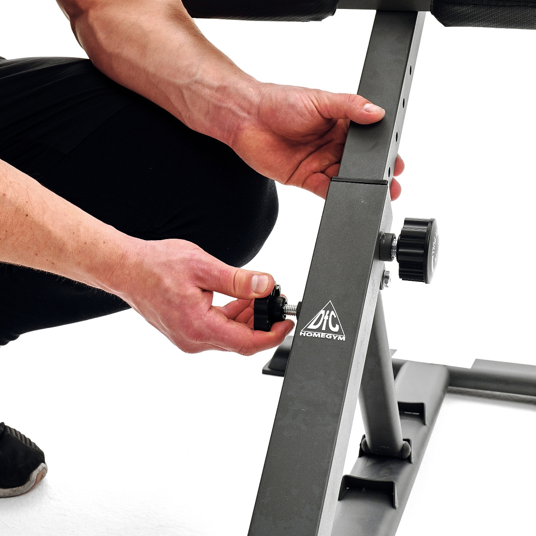 Гиперэкстензия DFC SUB027 – незаменимый тренажер для домашних тренировок. Гиперэкстензия подходит для укрепления мышц кора, тренировки общего мышечного корсета, укрепления мышц ног, ягодиц, бедер и брюшной полости.