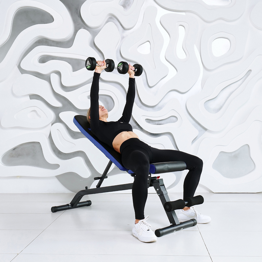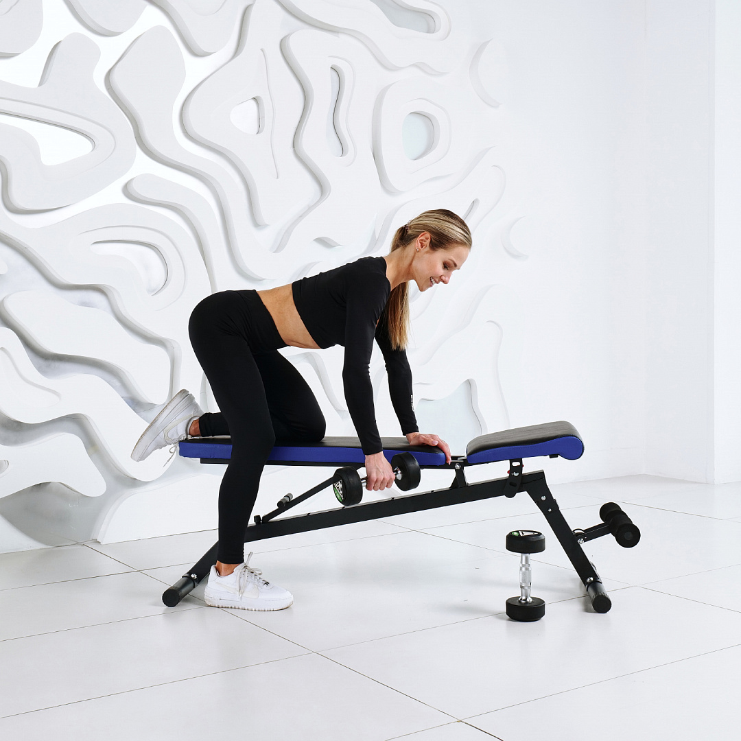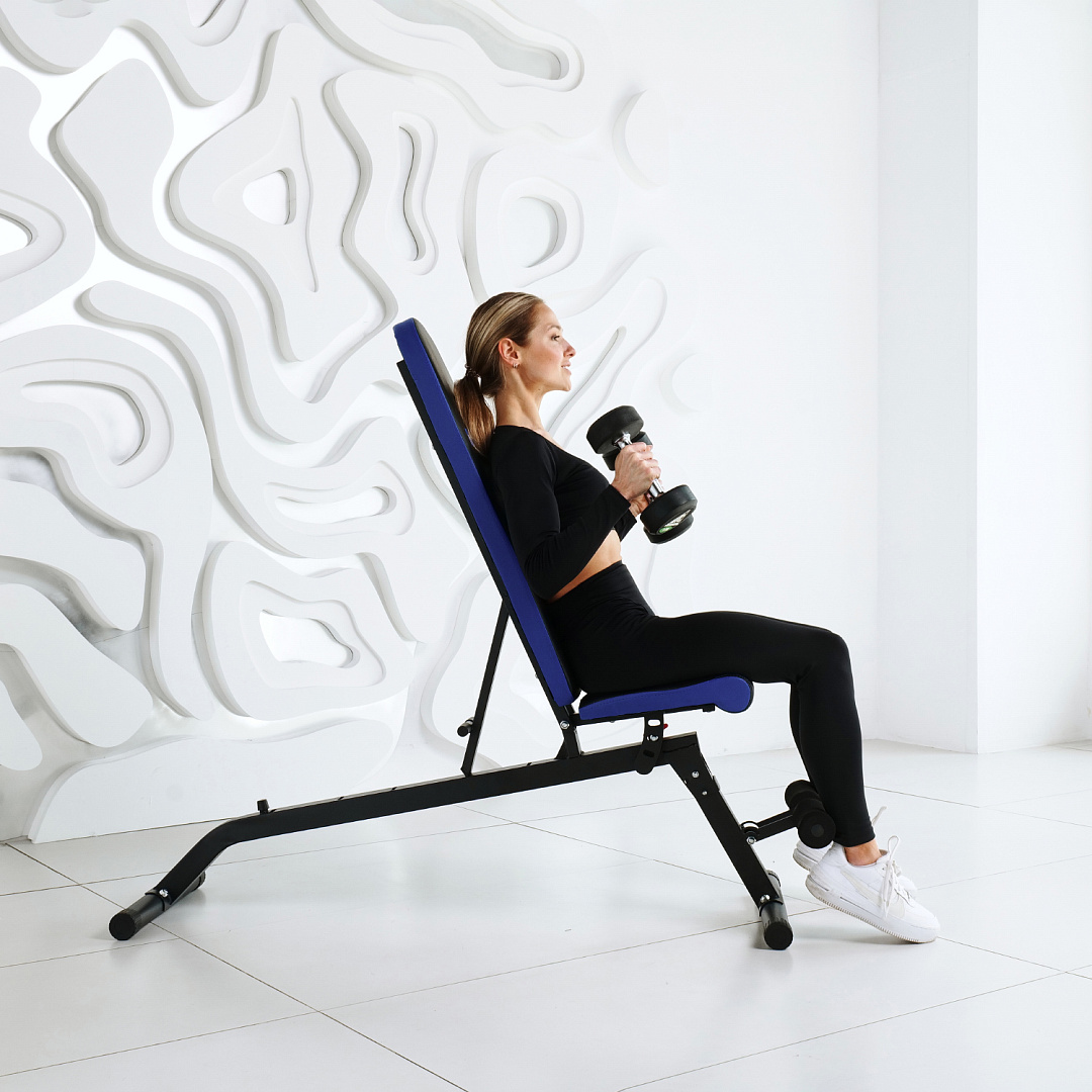 Максимальная нагрузка на скамью составляет 180 кг. Благодаря складной конструкции, скамья не займет много места при хранении .