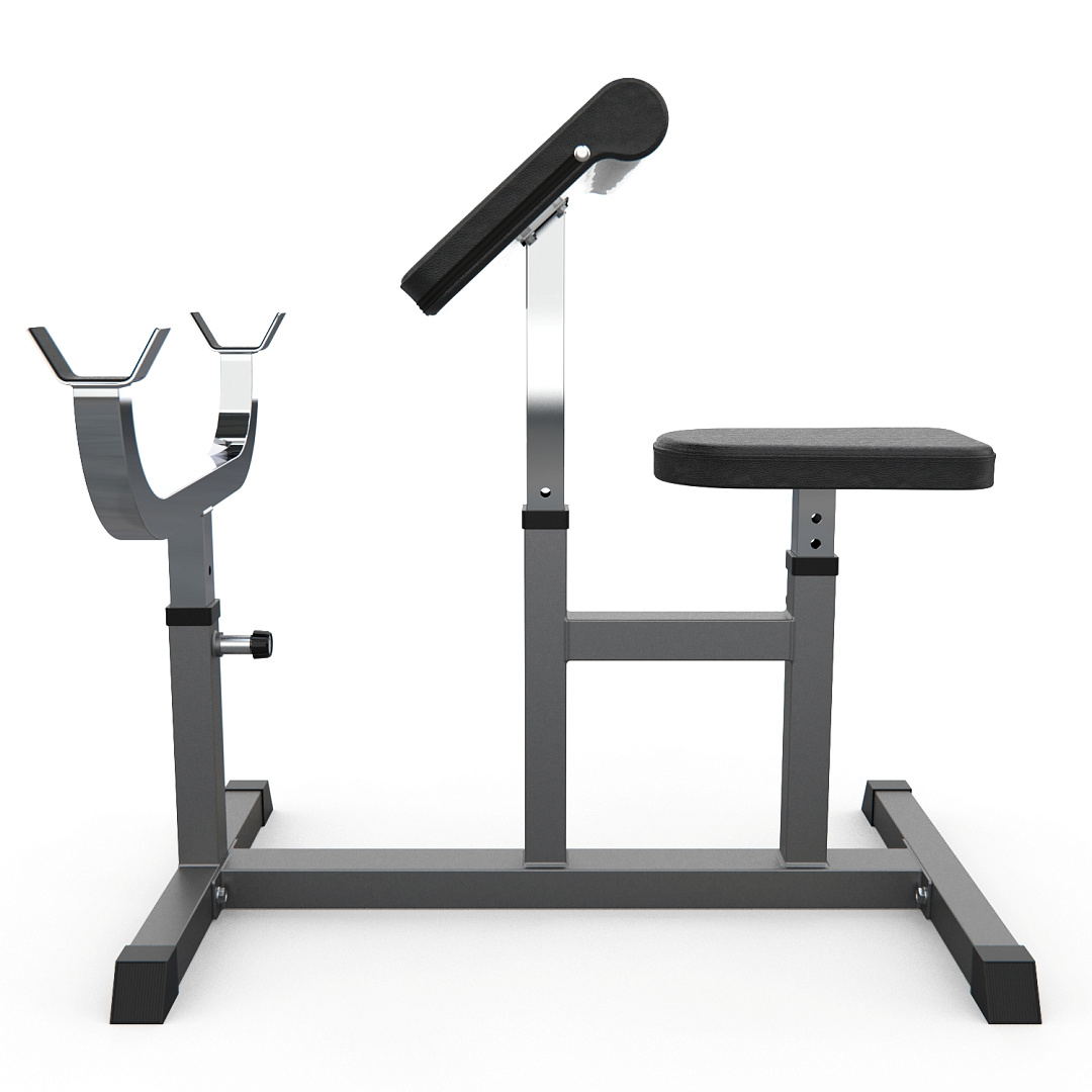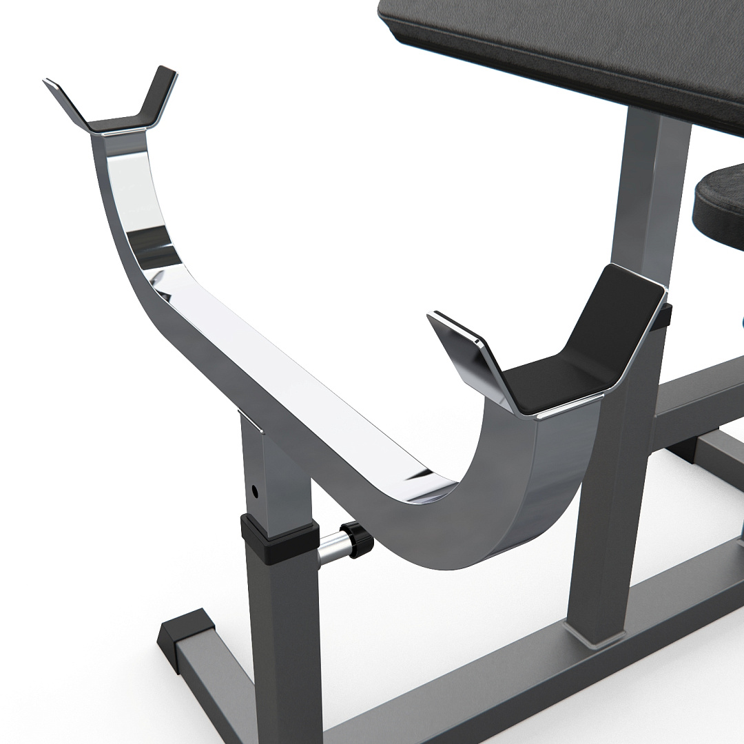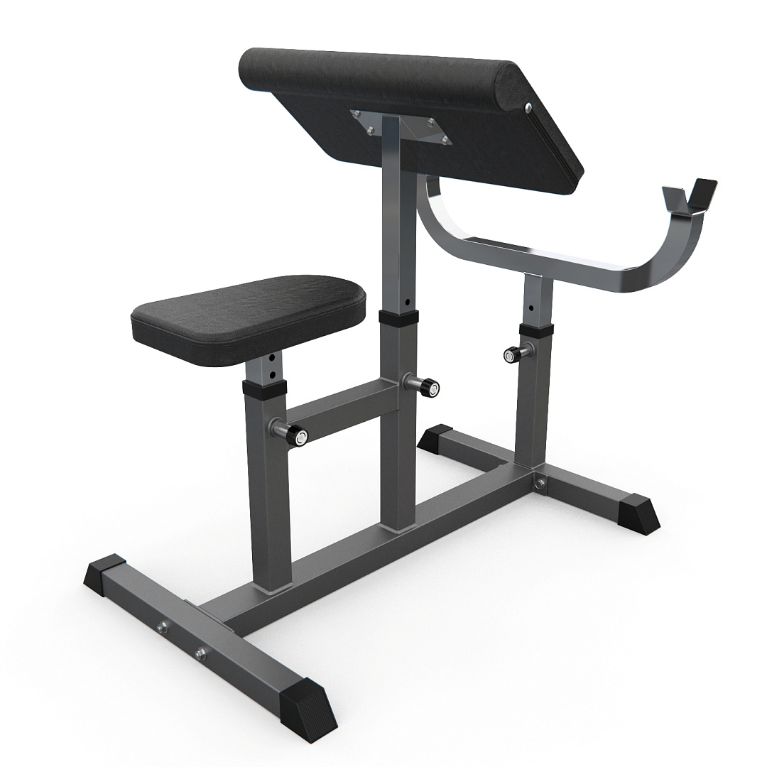 Сиденье, парта для бицепса и стойки под штангу регулируются по высоте. 4 уровня регулировки парты и 5 уровней - сиденья и стойки.Прочная рама тренажера изготовлена из высокопрочной стали, размер профиля: 50х50 и 50х70, толщина 1,5 мм. Ножки тренажера с резиновыми нескользящими вставками, что делает его устойчивым даже во время активной тренировки.